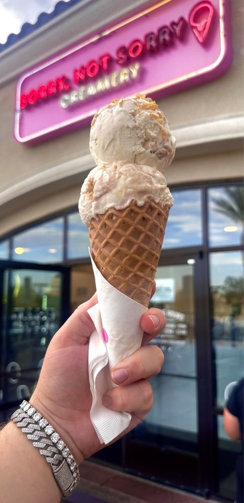 Welcome to Sorry Not Sorry Creamery - DTLV Fremont, where creamy indulgence meets local flair! Nestled at 517 Fremont St, this charming ice cream parlor offers a captivating array of flavors that celebrate Nevada's heritage and innovative treats. A standout is the Blackberry Basque Cake Pint, featuring a delightful swirl of housemade Nevada blackberries enveloped in a sweet cream base. The Double Stuffed Cookies and Cream takes a classic favorite up a notch with chunks of Oreos in an Oreo-infused base, delivering pure joy in every scoop.
